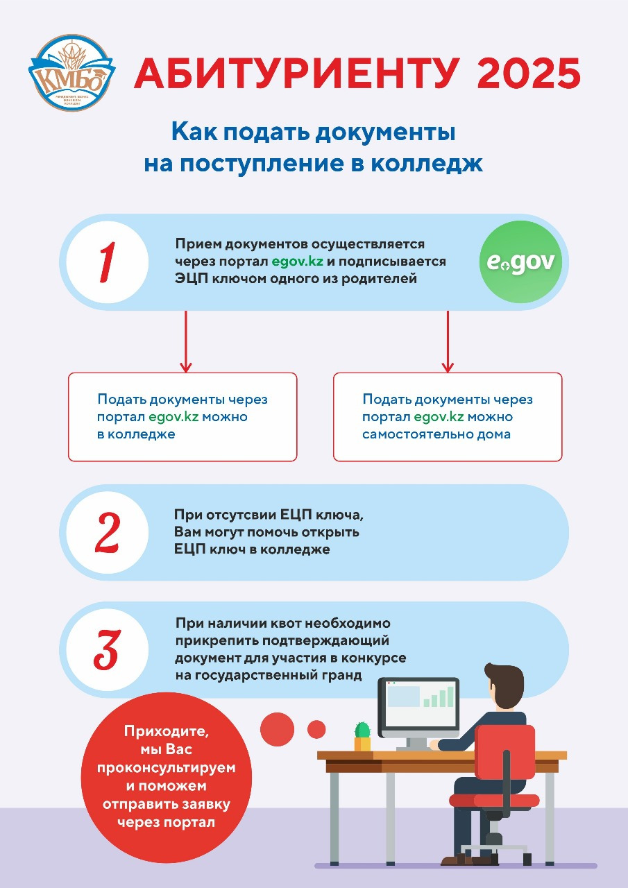 ✅Егер сізде ЭЦҚ болмаса — колледжде оны рәсімдеуге көмек көрсетіледі.
