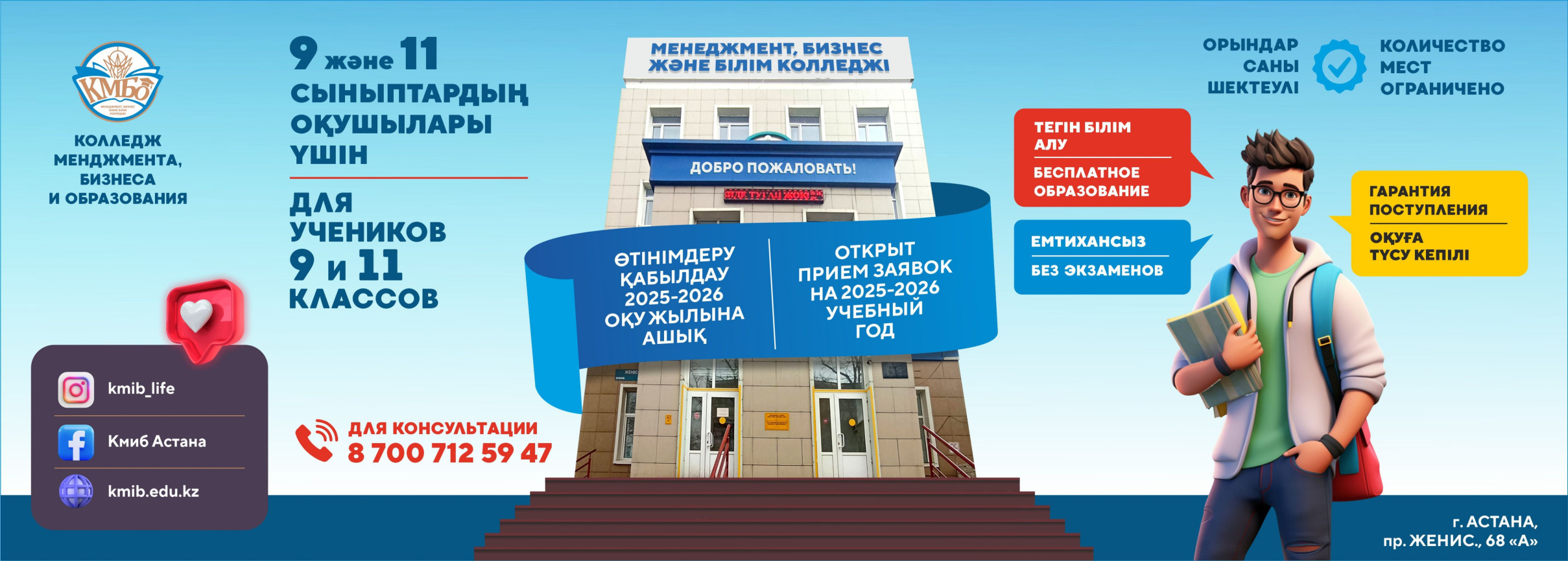 Миссия: Предоставление инновационных образовательных услуг и обеспечение квалифицированными специалистами столицы и РК