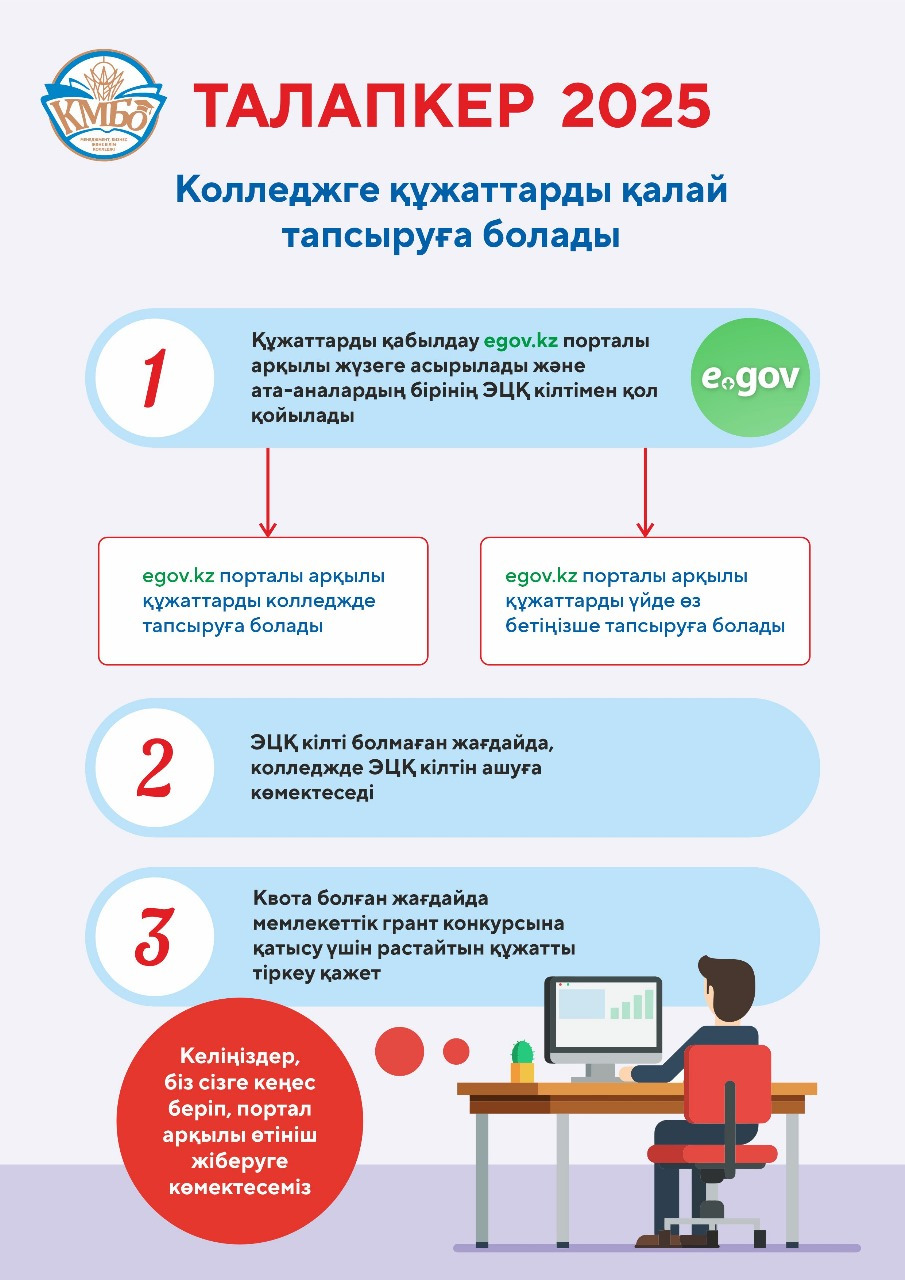✅Егер сізде ЭЦҚ болмаса — колледжде оны рәсімдеуге көмек көрсетіледі.
